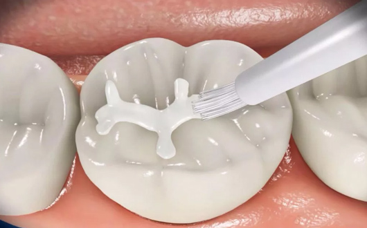 ◎ 技術介紹: 涂氟是在對牙齒進行清潔后,把氟保護漆涂抹在牙表面,使牙表面和縫隙附著氟化物,釋放氟化物,達到防齲目的。